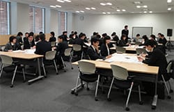 続いて、8グループに分かれ、分権型社会のメリットとデメリット、分権を享受するための自治体職員に求められる能力とは何か等についてグループディスカッションを行いました。 |